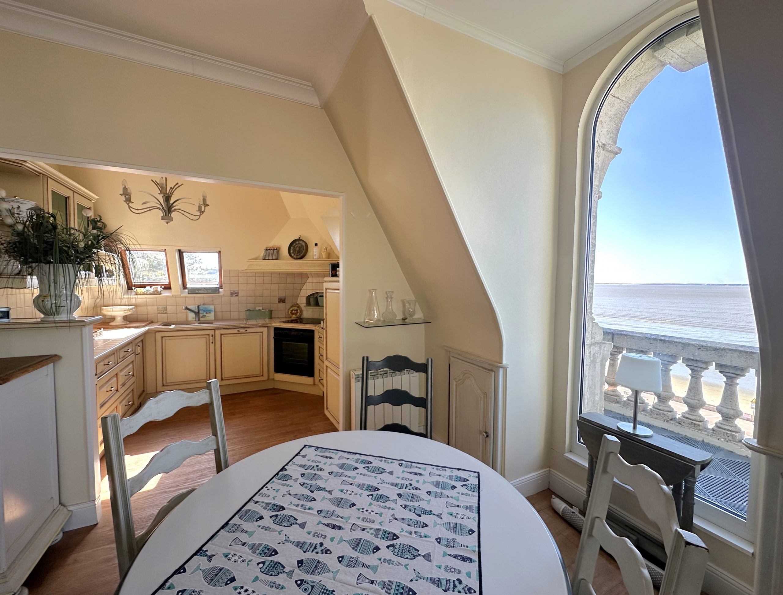 Dès l’entrée, vous serez séduit par une lumineuse pièce de vie avec cuisine ouverte aménagée et équipée, prolongée par une véranda offrant une vue imprenable sur la mer.